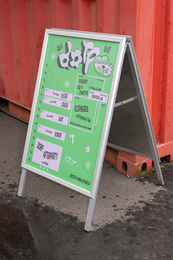 ↑ Festival identity for DORP in Bruges, a 4-day youth festival in Het Entrepot. Logo design with help from Rhune Kerkaert. (2024)