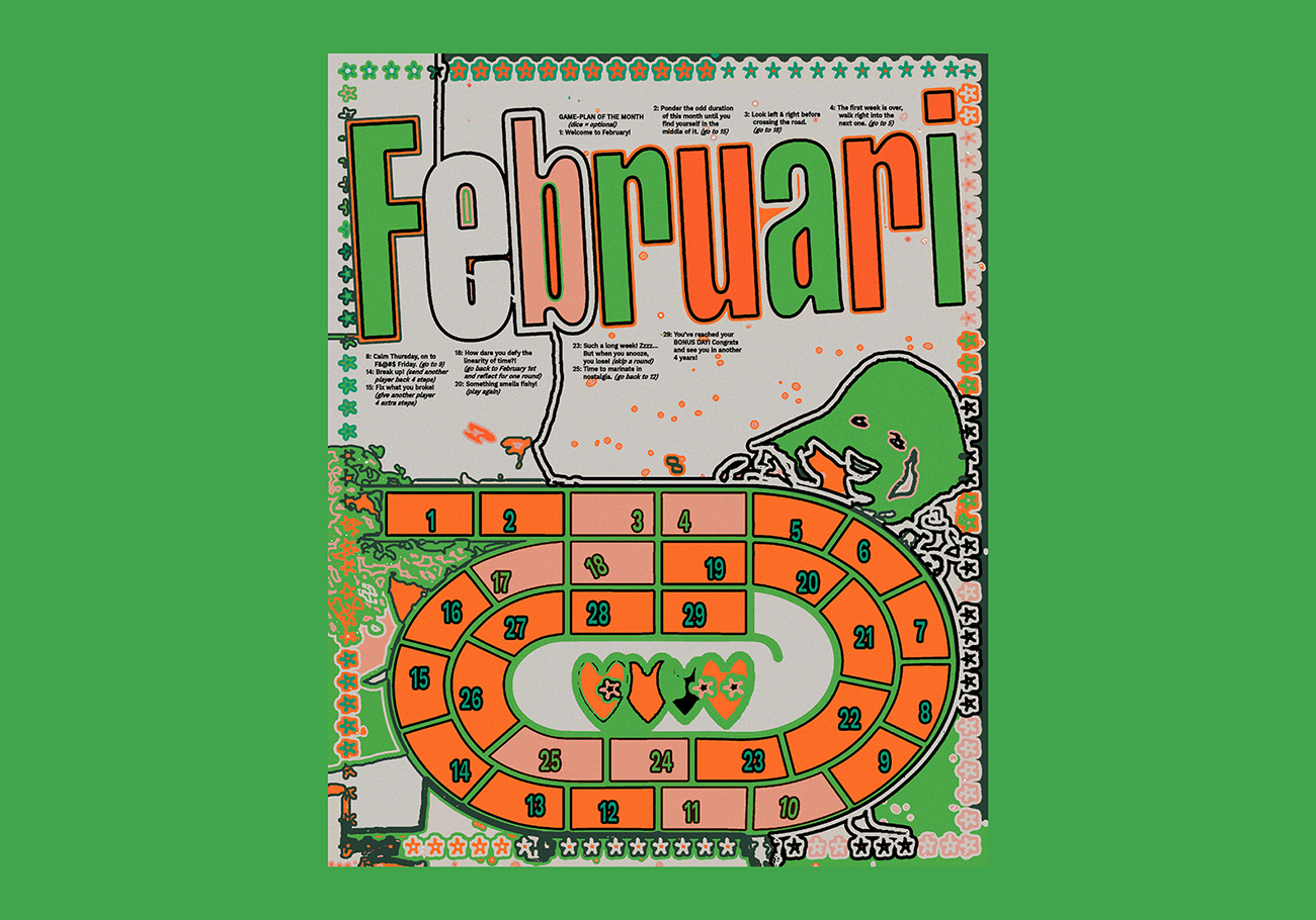 ↑ Design for the month of Februari for Twaalfmaal's yearly calendar project. In collaboration with Joram De Cocker. (2023)